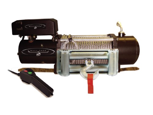 Cabrestante eléctrico BULLFACE 8000 con guía de rodillos, motor 4,1 h.p. para 3.620 kg, 12vol, 28 mts de cable, mando a distancia, freno y embrague, caja relés separada.