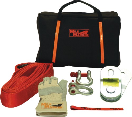 BOLSA DE RESCATE PARA 4X4 Y ATV. COMPUESTA POR: ESLINGA, 2 GRILLETES, POLEA DE REENVIO, LAZO PARA GANCHO Y GUANTES.